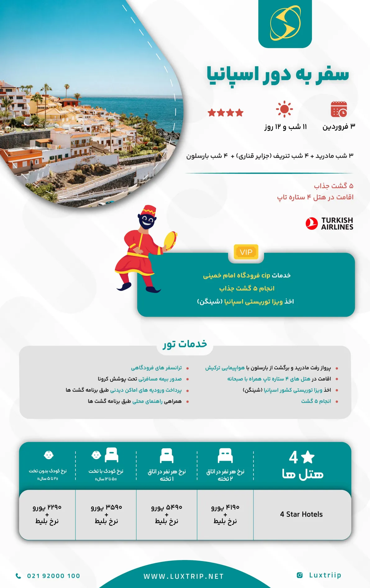 نرخ کودک (بدون تخت) 2290 یورو + نرخ بلیط