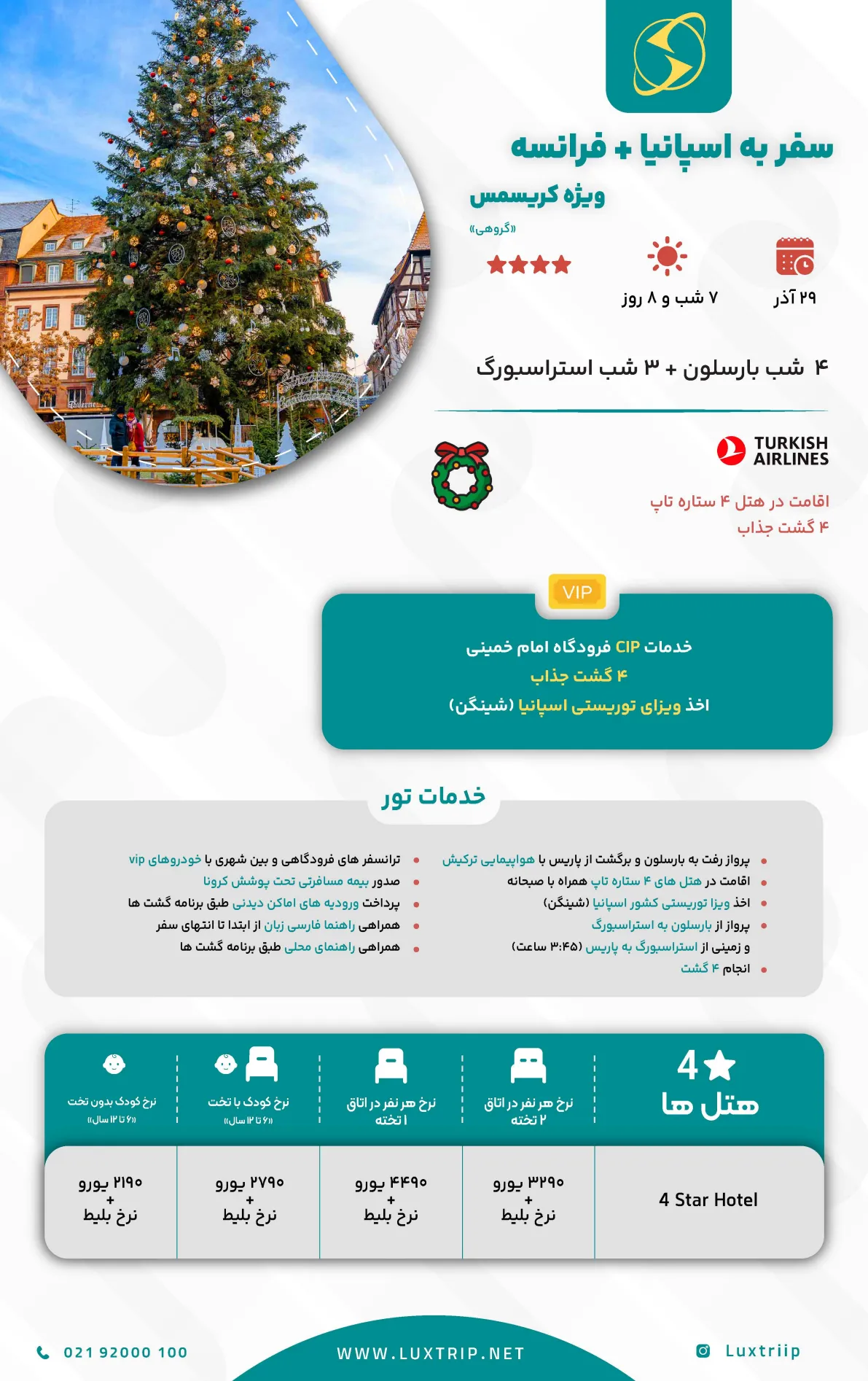 آژانس ستاره ولنجک شما را به سفری رویایی در جادوی کریسمس دعوت می‌کند؛ از خیابان‌های پرنور و جشن‌های پرشور بارسلون، تا بازارهای سنتی و فضای افسانه‌ای استراسبورگ.
