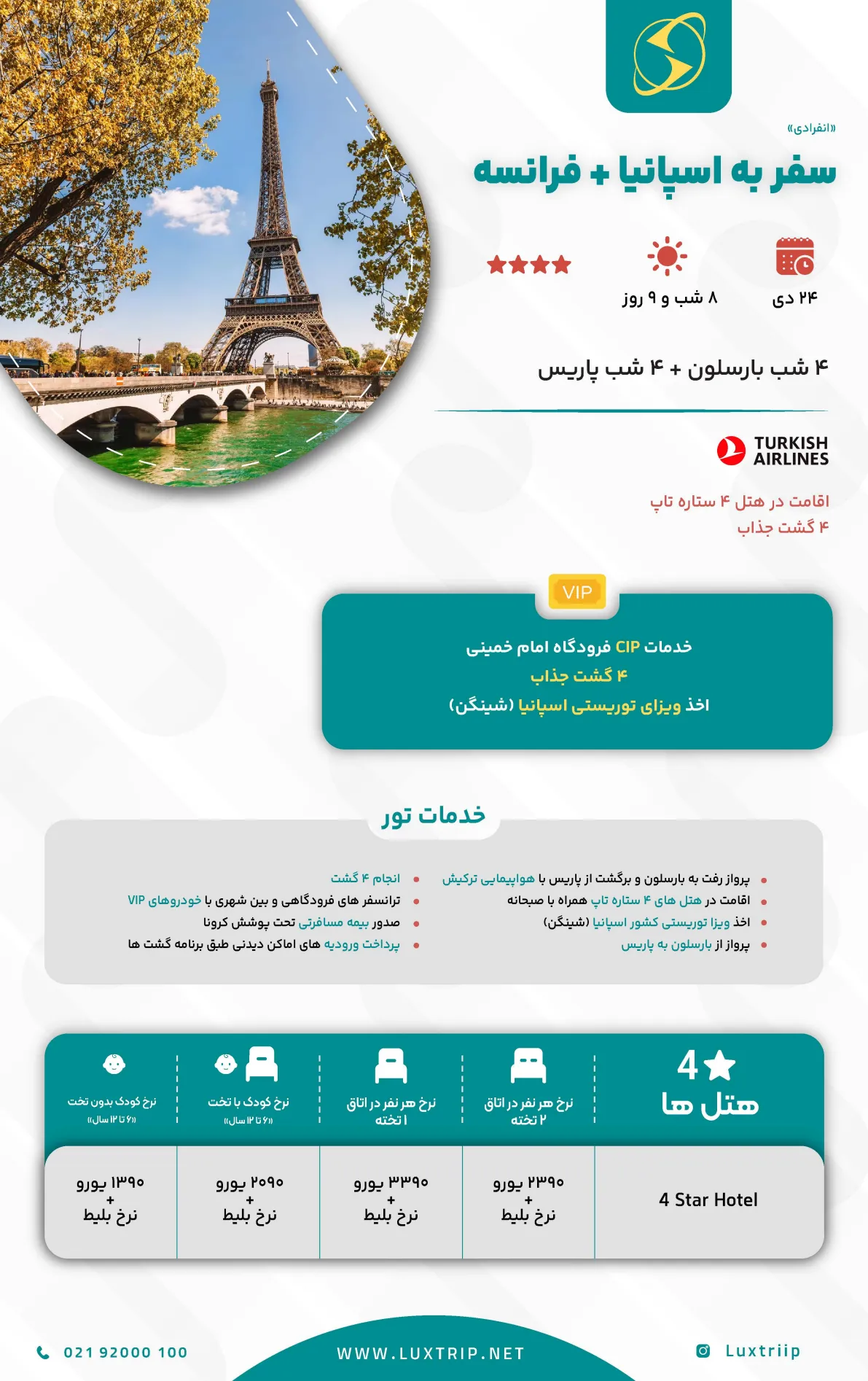 4 شب بارسلون + ۴ شب پاریس