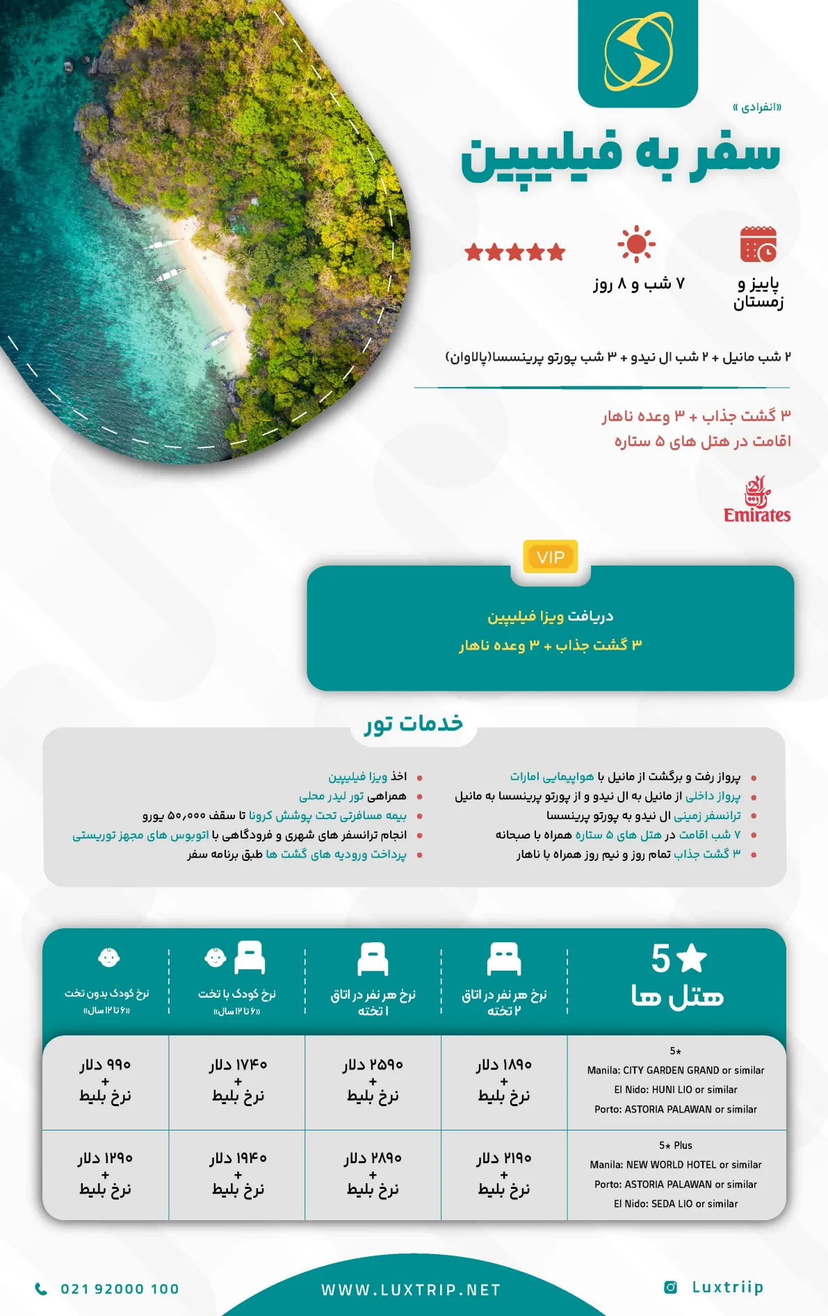2 شب مانیل + 2 شب ال نیدو + 3 شب پورتو پرینسسا(پالاوان)