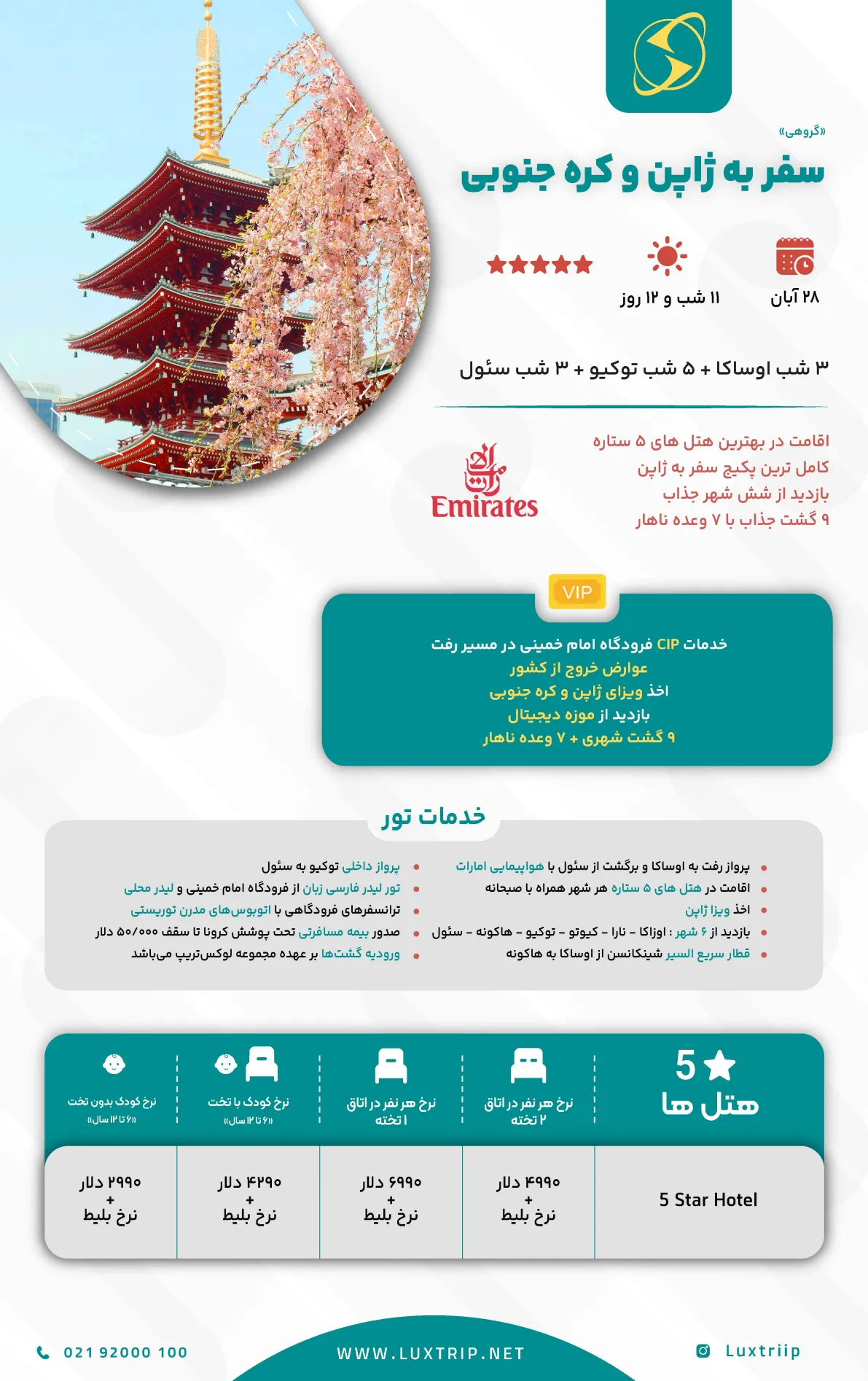 3 شب اوساکا + 5 شب توکیو + 3 شب سئول