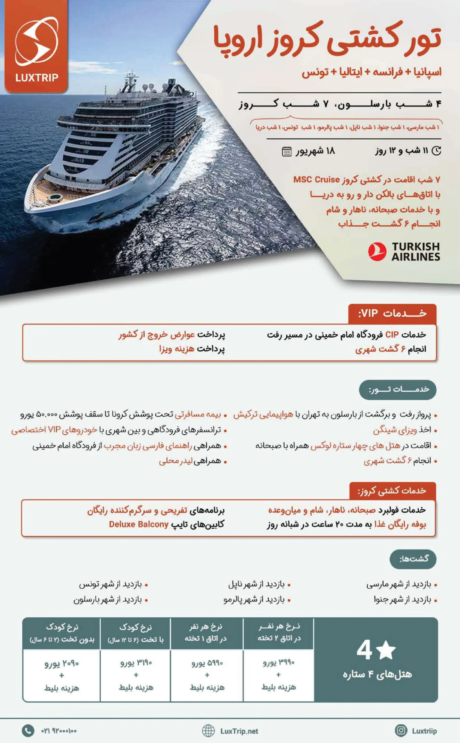 بعد از صرف صبحانه، خروج از کشتی، حرکت به سمت فرودگاه بارسلون و بازگشت به ایران