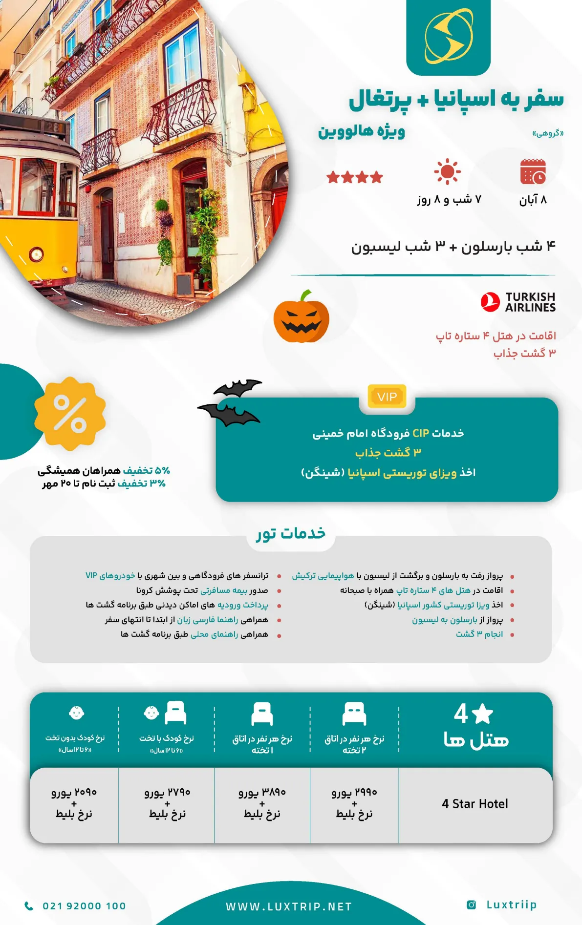 پرواز رفت به بارسلون و برگشت از لیسبون با هواپیمایی ترکیش